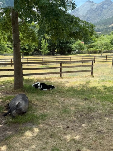A creative project featuring large-scale abstract artworks created by a rescued farm animal. The initiative also promotes sustainability and animal welfare.