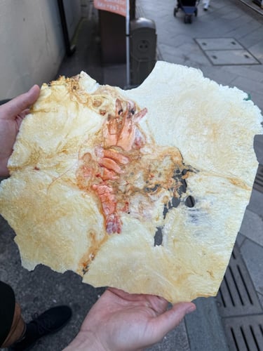 And PLEASE try this: thin pancake bread filled with shrimp or octopus. I don’t even know how to describe it. Weird? Yes. Delicious? Also yes.